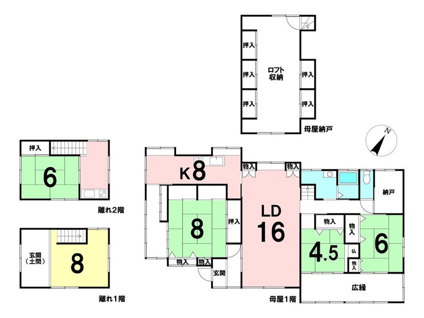◆ 母屋:木造平屋 3LDK+S、離れ:木造2階建て 2K
