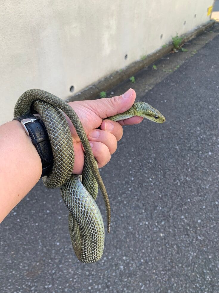 久しぶりに見るアオダイショウです。