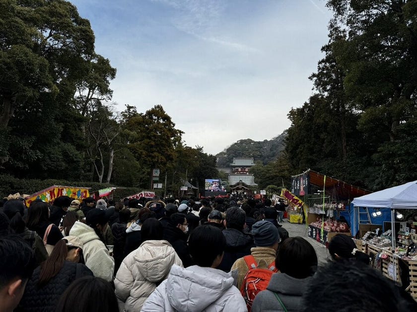 さすが正月の鶴岡八幡宮、本殿に辿り着けるのか‥