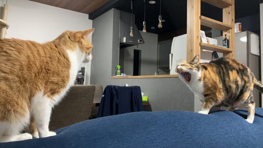 はーーーーい! 藤田です! 我が家の猫ちゃんの写真を撮っていた際に偶然あくびをしたタイミングでぱしゃり!!! 二匹が向かい合っているのも相まってまる...