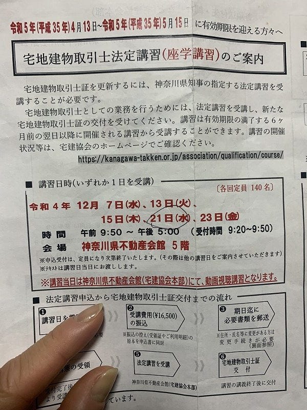 ご無沙汰しております。 今年こそブログ王!を目指して早速頓挫しそうなひらしまです。 昨年末のことなんですが、宅建免許更新しました。 初めての更新だったんですが、も...